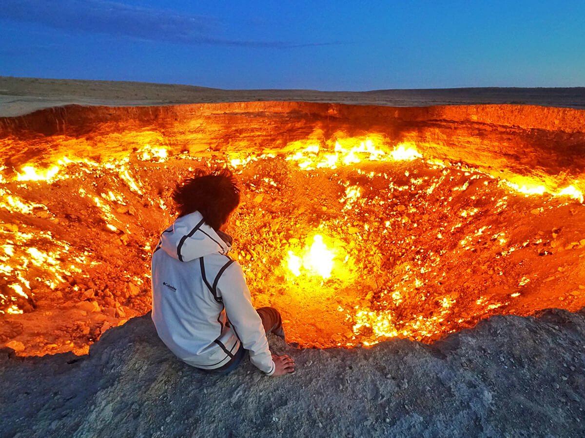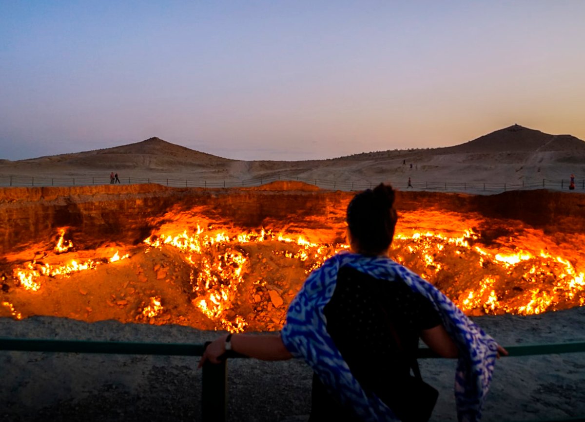 Experience the legendary Darvaza Gas Crater in the Karakum Desert with BBQ dinner